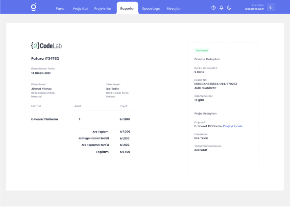 Projenizin yasal uyumla ilerleyebilmesi için proje sözleşmenizi ve faturanızı hazırlayıp müşterinize iletelim.