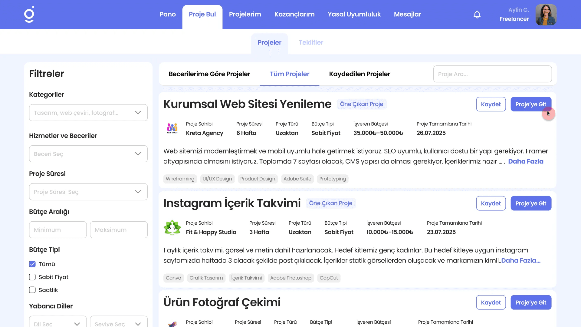 💡 İpucu: Daha fazla projeye ulaşmak için profilinizi ve becerilerinizi güncel tutun, açıklamalarınızı detaylı yazın.