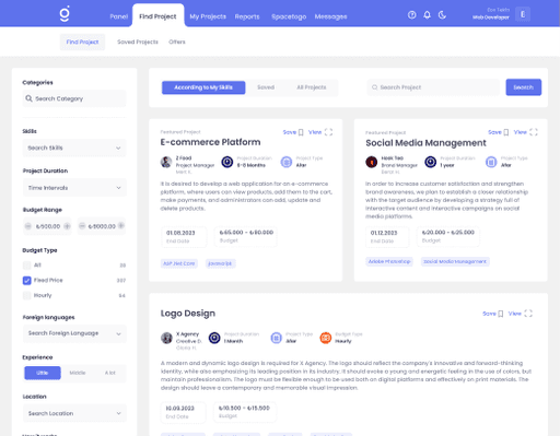 Explore projects published bycompanies and submit yourproposal. Meet and negotiate with clients through your panel.