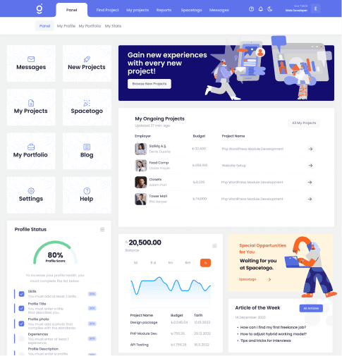 Freelancers can bid on job listings posted by companies and negotiate with clients for projects through Jobtogo. They can view project details, submitted proposals, worked clients, pending payments, and other information on their user panels. Freelancers who do not have the option to invoice their clients can also avail themselves of invoicing and payment services from Jobtogo. They can monitor their balances in real-time and transfer funds to their accounts whenever they wish. Jobtogo enables freelancers to have a steady income stream, advance in their careers, and manage their work processes smoothly.